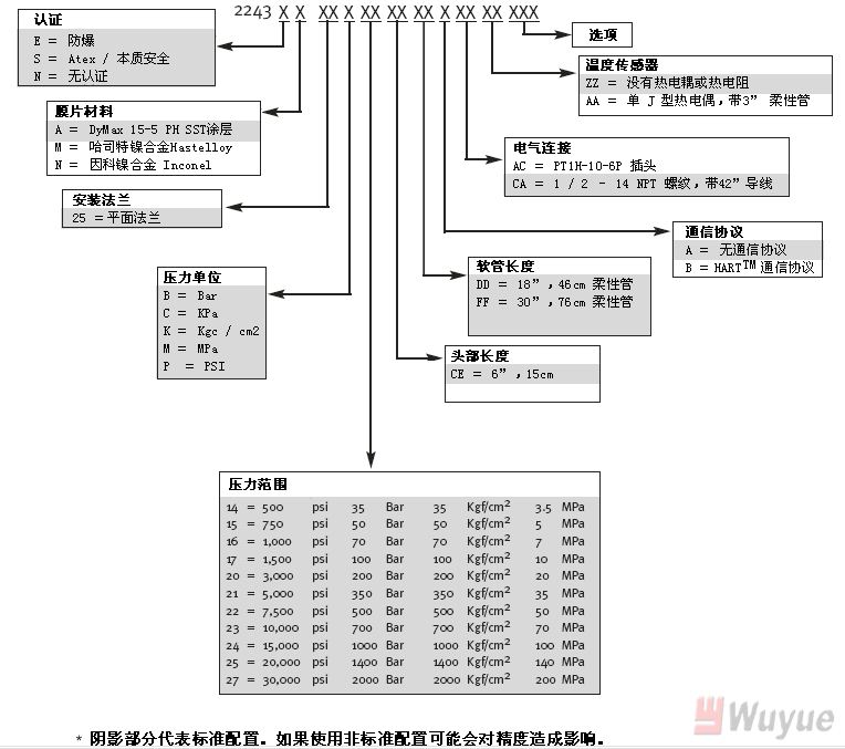 特征 ★ 通過“Z971”選項改進的線性產(chǎn)品 ★ HARTTM數(shù)字通訊系統(tǒng) ★ 4-20mA 環(huán)路供電輸出 ★ 0-500到0-30,000psi ★ 防爆,ATEX/本質(zhì)安全認證 ★ 符合PED和CE要求 優(yōu)點 ★ 線性改進80% ★ 能通過手持式裝置配置 ★ 直接提供輸出給DCS或PLC ★ 由客戶定義壓力量程 ★ 已認證無環(huán)境污染 ★ 符合新的EC要求 產(chǎn)品描述 SPX-L產(chǎn)品是一個智能的4-20mA 按鈕密封式壓力傳感器,能在惡劣的環(huán)境下使用。SPX2243是全焊接結(jié)構(gòu),具有一個小膜片和一個法蘭墊片,便于輕松安裝。SPX2243E適用于1級,1區(qū),A,B,C&D組的危險區(qū)。防爆模式采用一個導(dǎo)管裝置。SPX2243S還擁有ATEX/本質(zhì)安全‖1Gooa Eex ia ‖C, 0和1區(qū)的認證。本質(zhì)安全和ATEX模式被提供一個導(dǎo)管裝置或一個密封6針邦迪克斯連接器。SPX-L同樣包括一個新的Dynisco 先進模塊,DynalarityTM,一個使由材料和加工變化引起的偏移線性化的高級運算法則模塊。 SPX-L2243按鈕密封式高溫熔體壓力傳感器(button type seally pakaged high temperature melt pressure sensor)